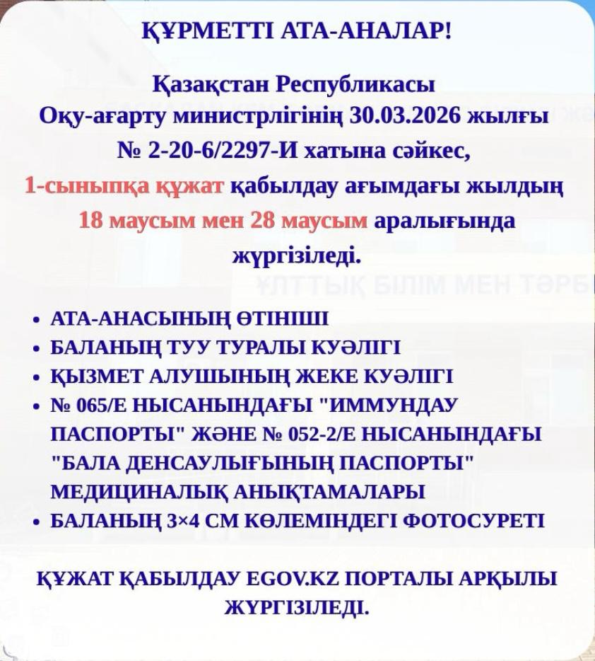 1 сыныпқа қабылдау