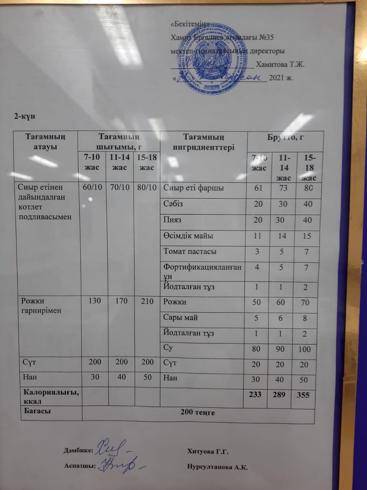 21.12.2021 ж күнгі оқушылардың тамақтану ас мәзірі