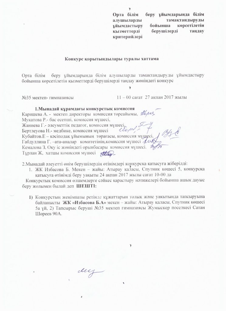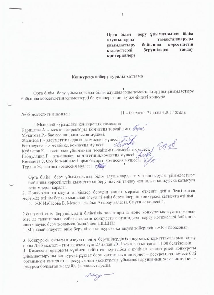 «№35 ХАМИТ ЕРҒАЛИЕВ АТЫНДАҒЫ МЕКТЕП-ГИМНАЗИЯ» КММ