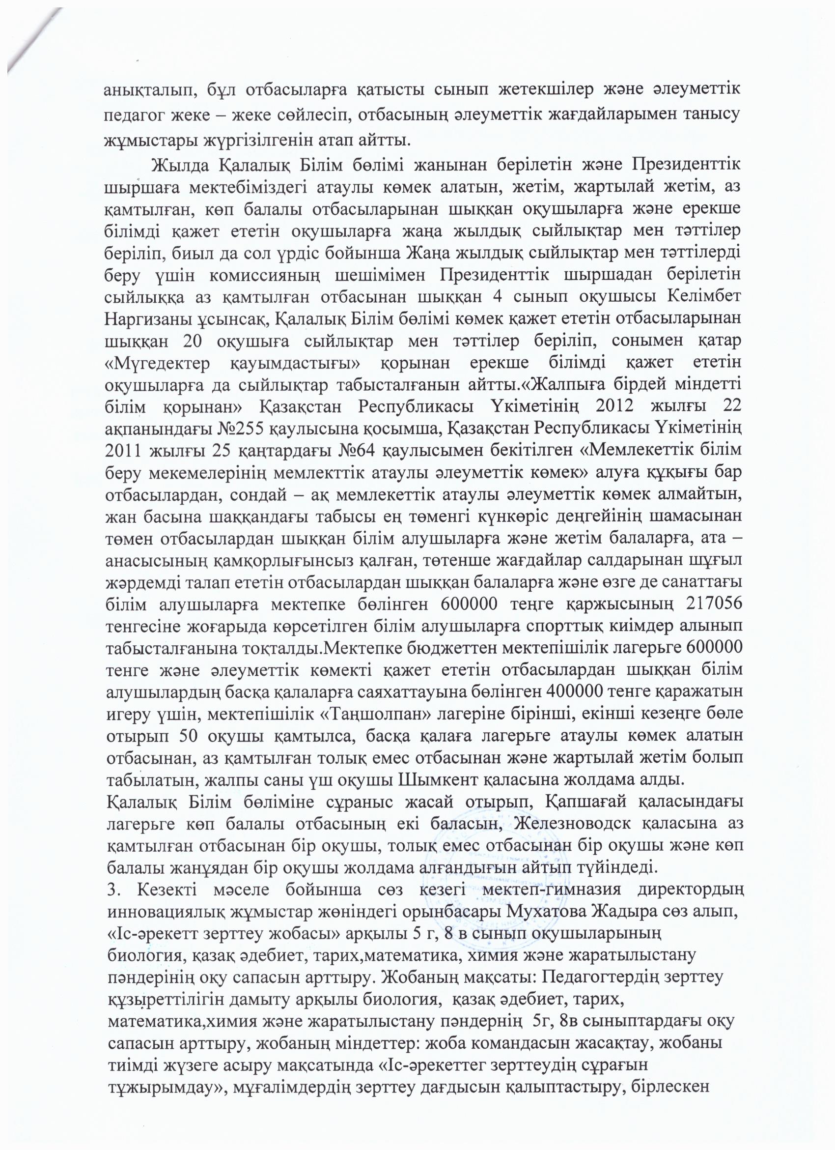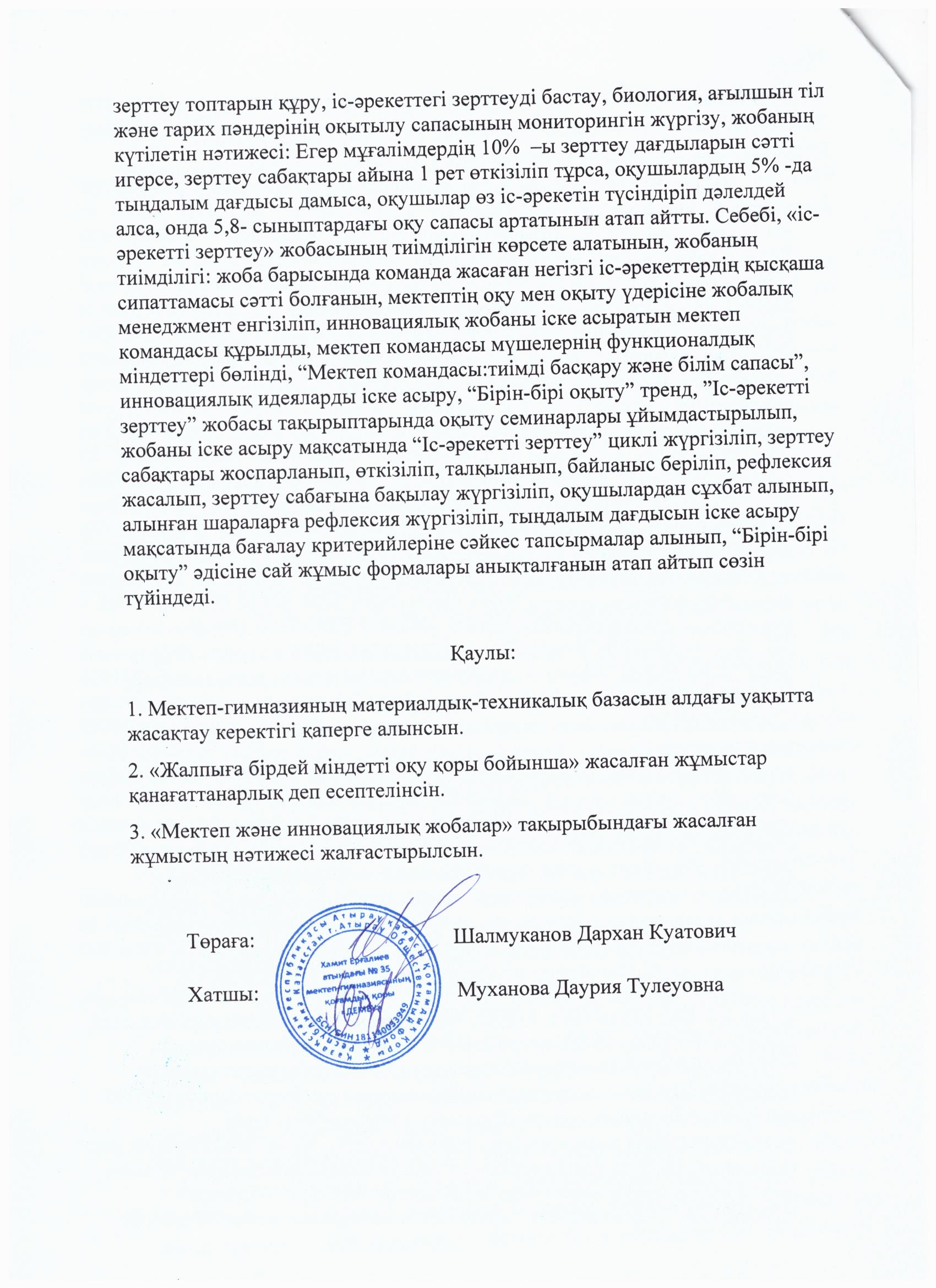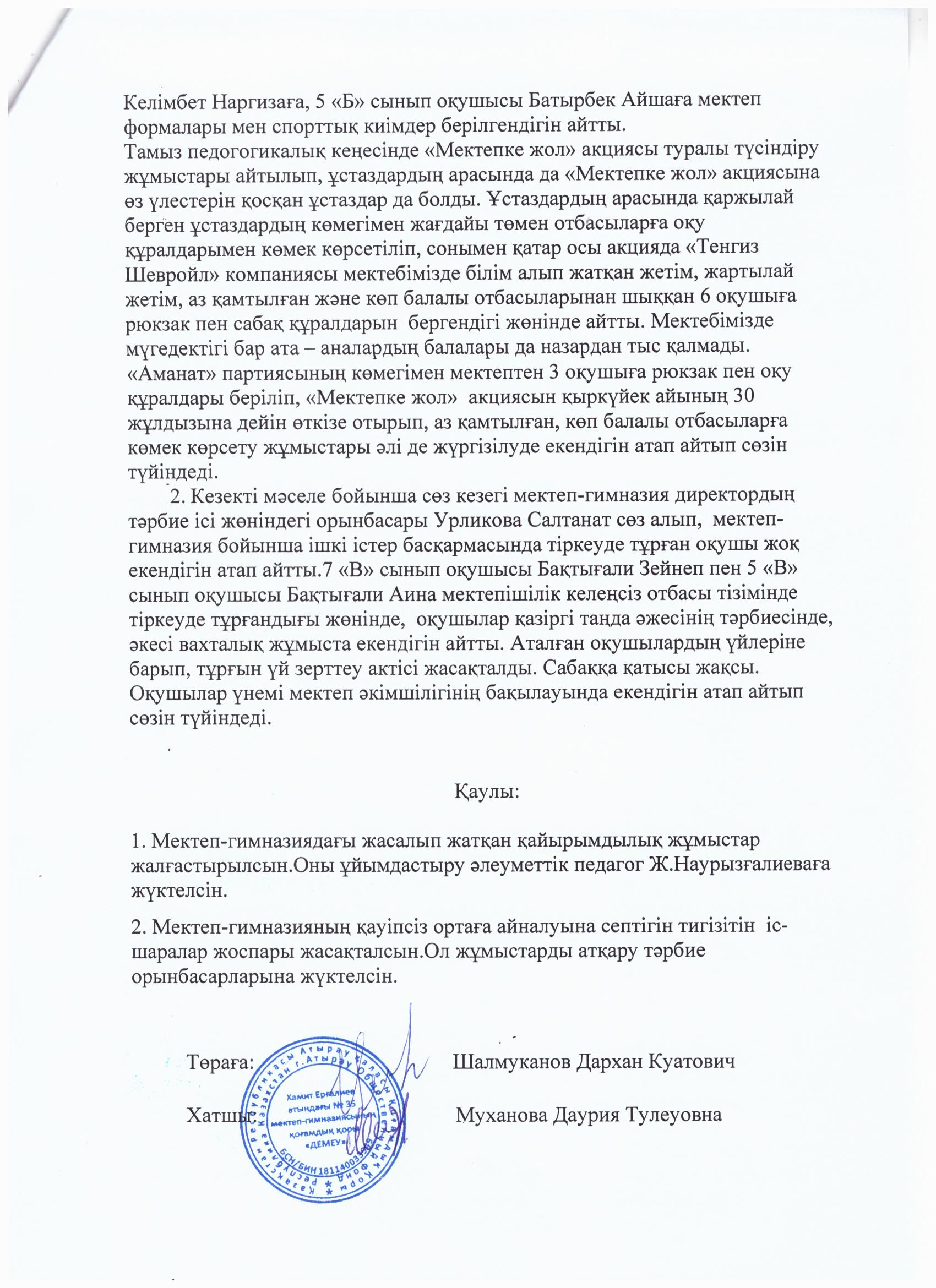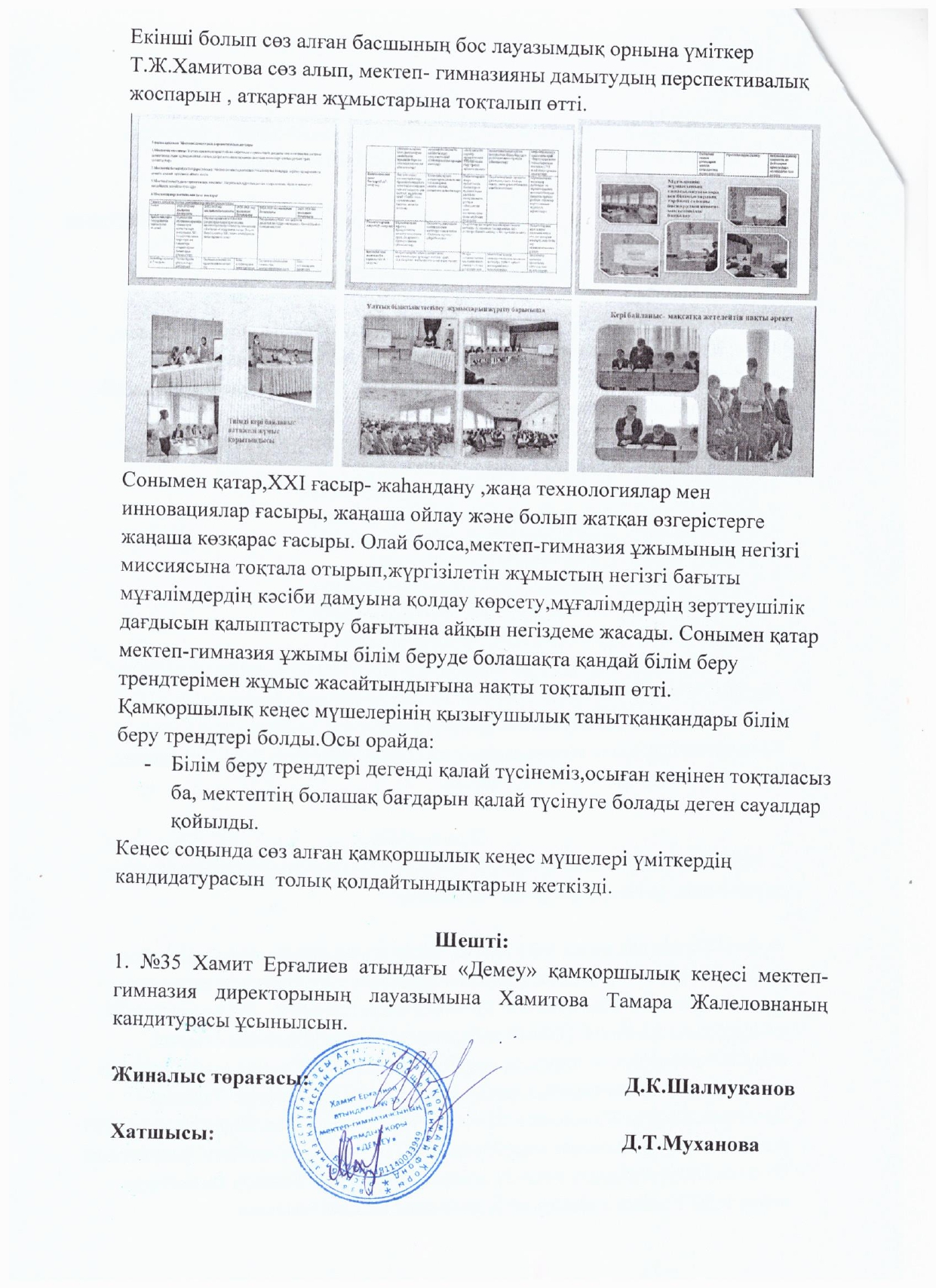 - №35 Хамит Ерғалиев атындағы мектеп-гимназия бойынша «Қамқоршылық Кеңесі» құрылсын.