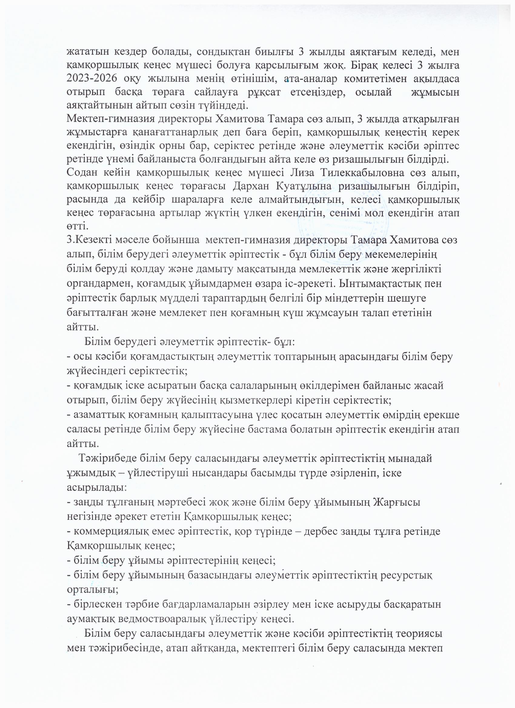 Қамқоршылық кеңесінің №3 отырысының хаттамасы