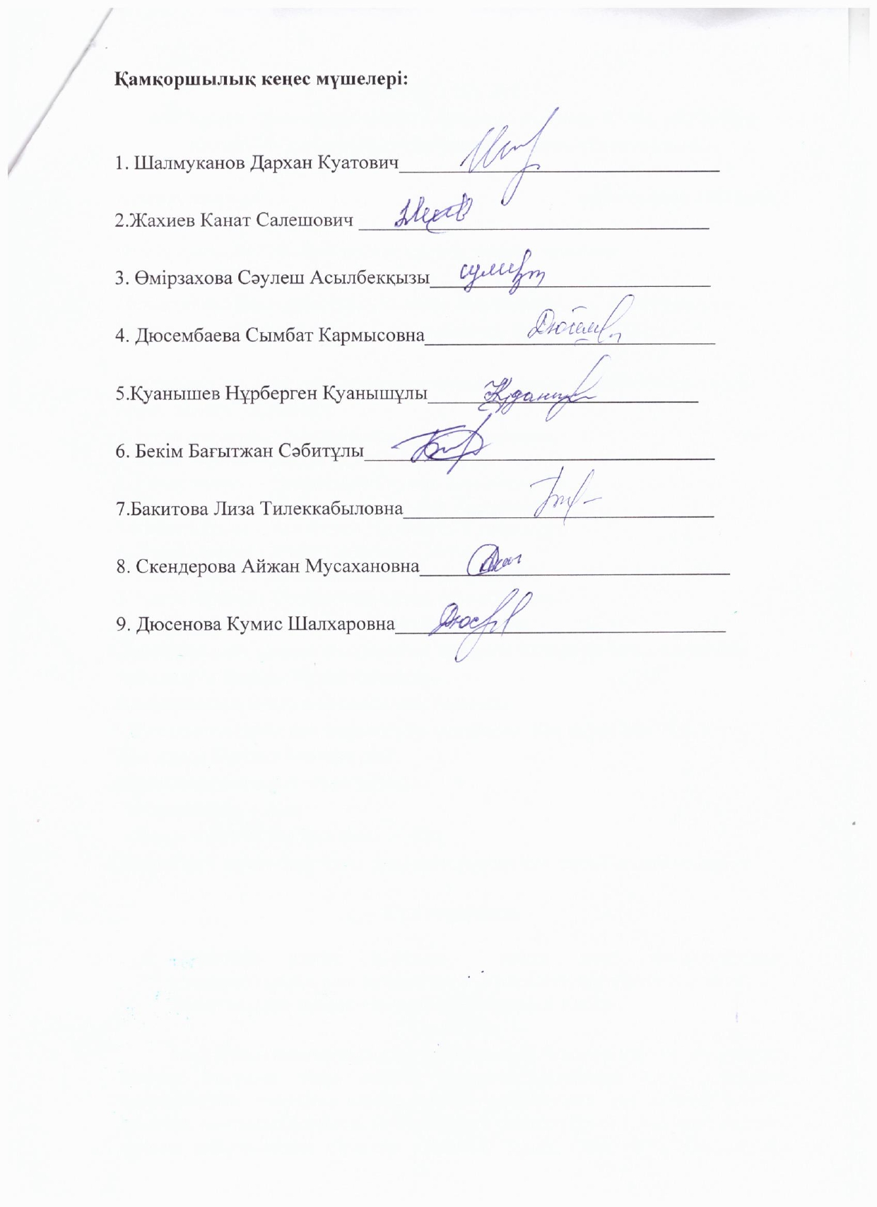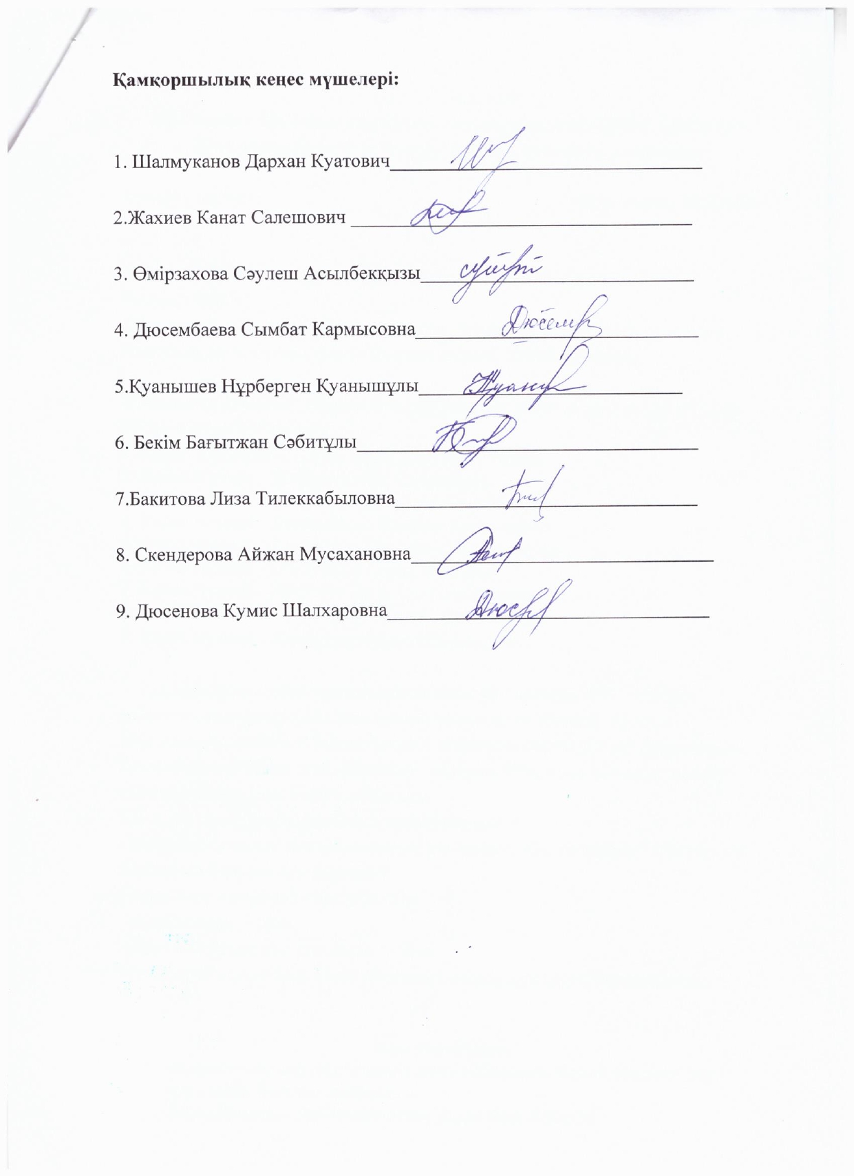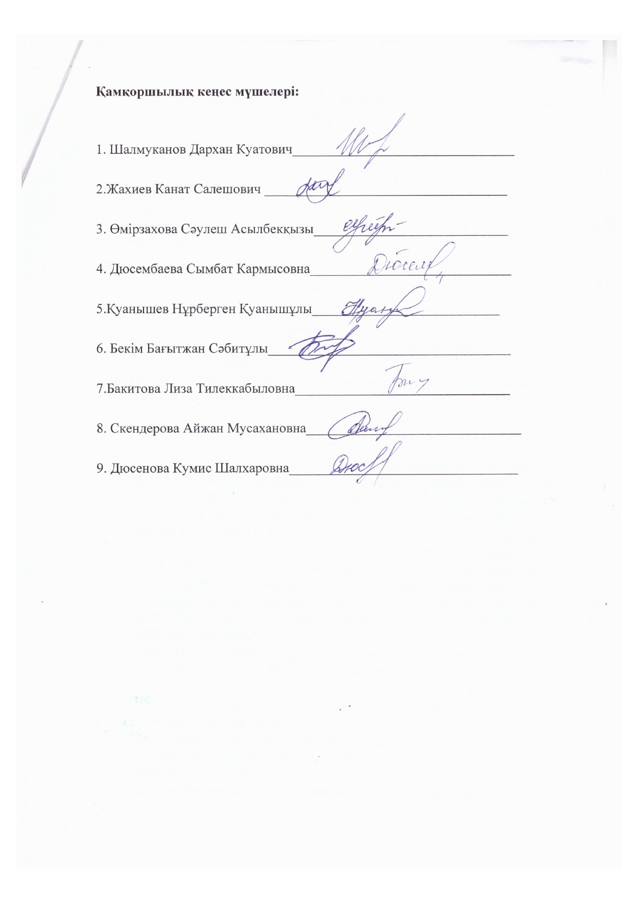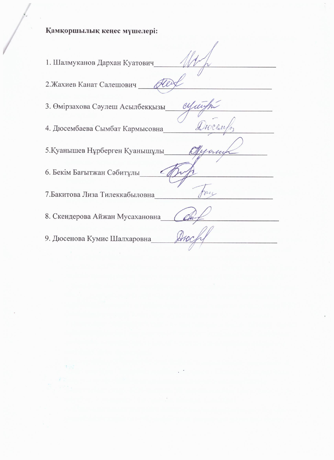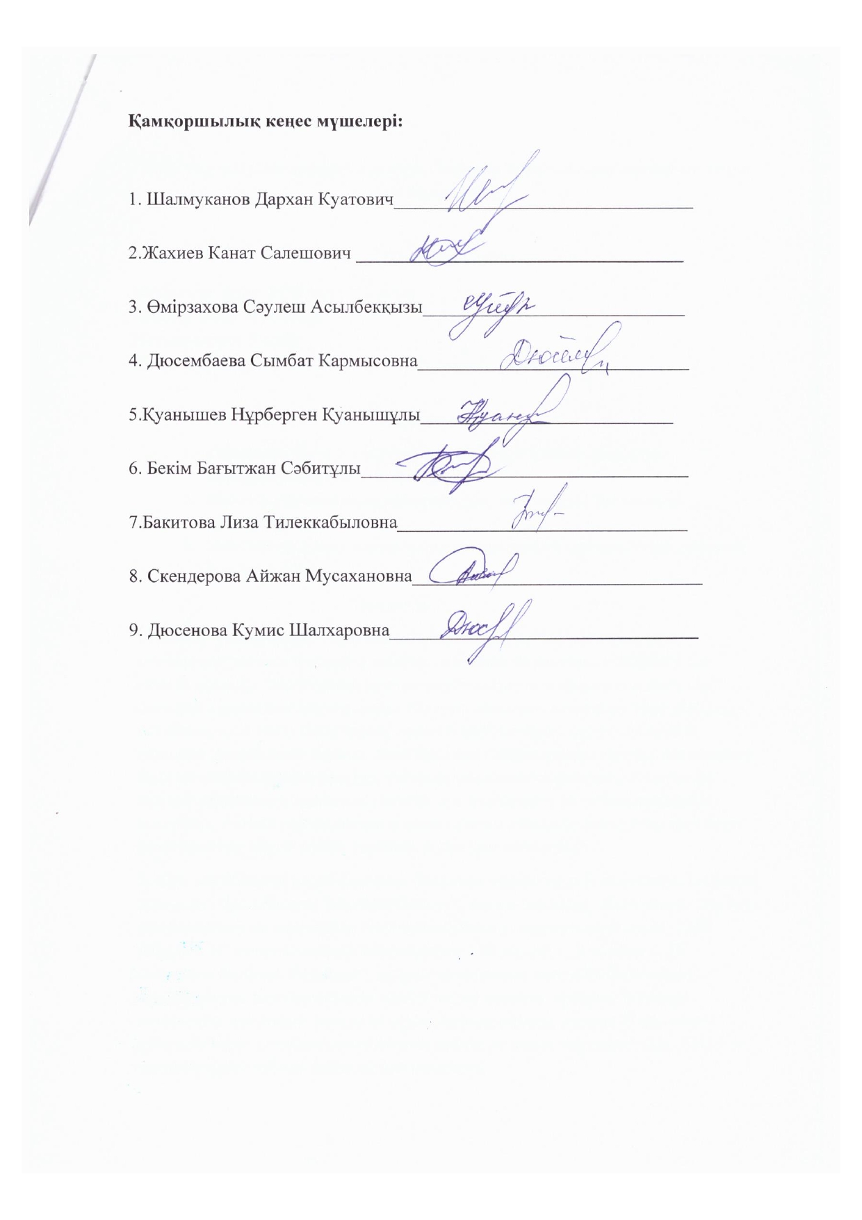 - Алимбаева Г -қамқоршылық кеңес мүшесі,хатшы